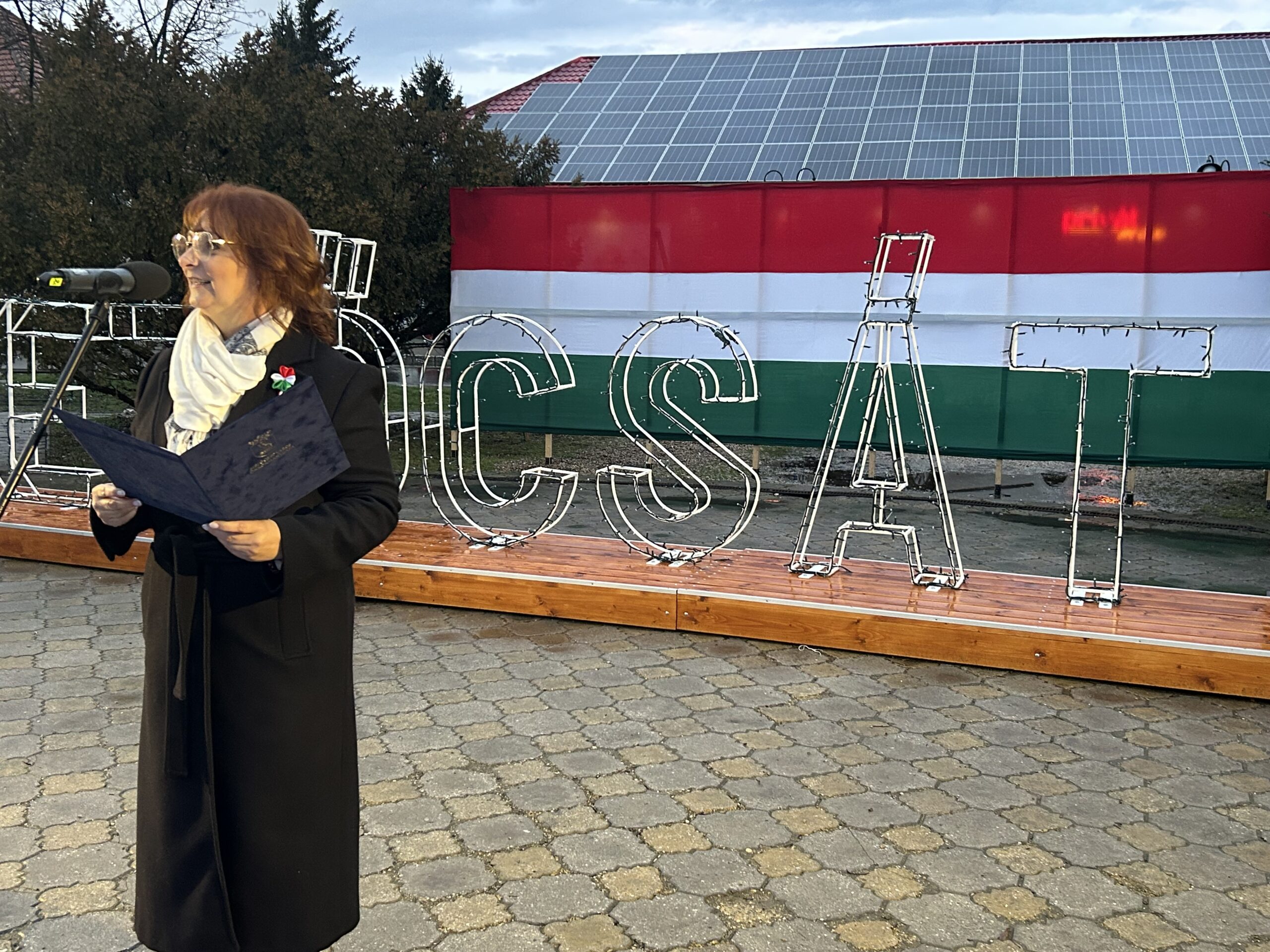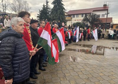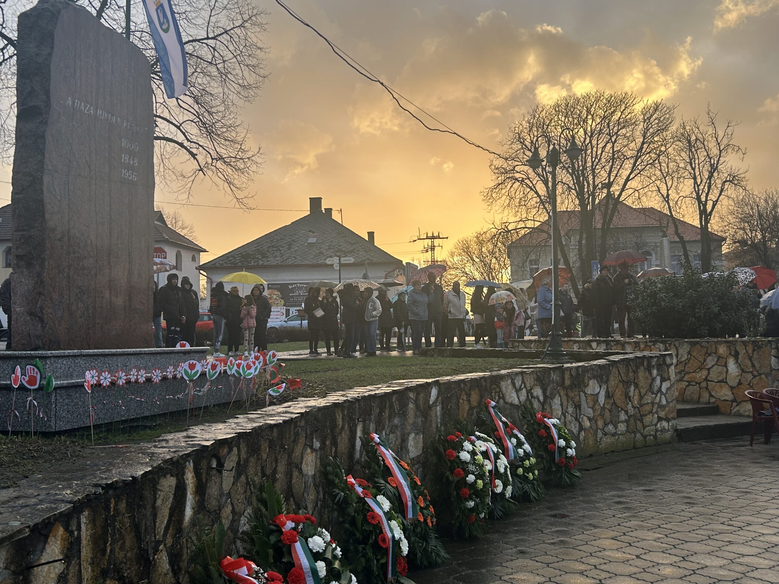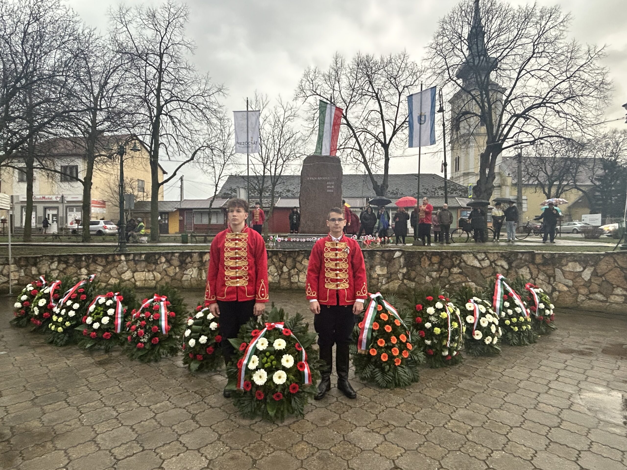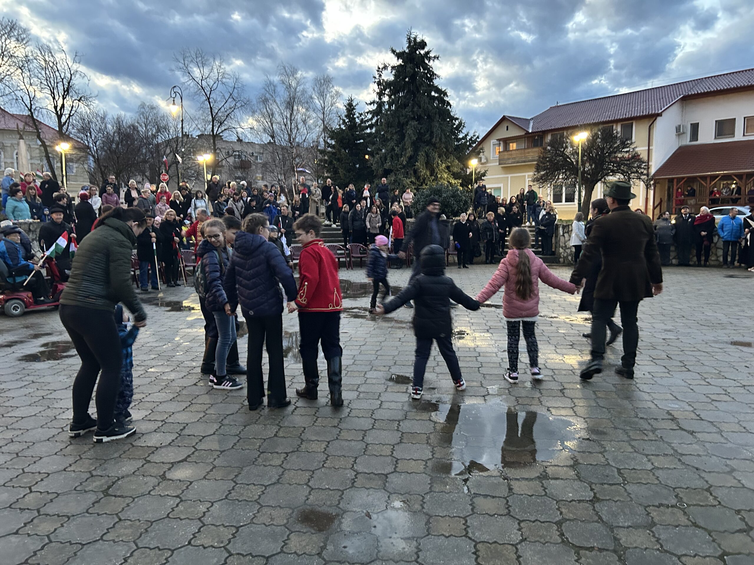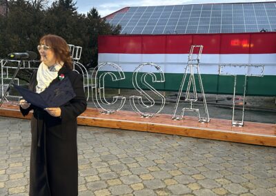 Az idő nem volt kegyes hozzánk, hisz a szép időnk után beborult és esővel kezdtünk neki a délutáni fényfelkapcsoló rendezvényünknek. Ennek ellenére sokan kíváncsiak voltak és velünk tartottak egészen a végéig. Az ünnepélyes zászlófelvonás után koszorúzás következett az 1848/49-es forradalom és szabadságharc emlékére. Ezt követően láthattuk a 4-Dance Club műsorát, hallhattuk Siposné Horváth Anita, városunk polgármesterének köszöntő beszédét, valamint csatlakozhattunk a Mezőcsát Népi Együttes táncházához. Az ünnepi műsorban közreműködött a Mezőcsáti Színtársulat, a Lila Akác Nyugdíjas Klub és a Mezőcsáti Napocska Óvoda gyermekei is. A nap végére felkapcsoltak városunk fényei…