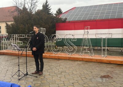 A Mezőcsáti Művelődési Központ és Könyvtár színháztermében, pontban 11.00 órakor a Nemzeti Imádságunkkal, a Magyar Himnusszal vette kezdetét városi megemlékezésünk. Emlékeztünk az 1848/49-es forradalom és szabadságharc történéseire, hőseire. Ünnepi beszédet mondott városunk polgármestere, Siposné Horváth Anita, melyben kiemelte a múltunk iránti elköteleződésünket, a jelenünk fontosságát és a jövőnk érdekeit. Ezt követően átadásra kerültek a városi kitüntetések, melyet Siposné Horváth Anita polgármester, Tállai András államtitkár úr és Kápolnai László alpolgármester úr adtak át, majd a Mezőcsáti Egressy Béni Általános Iskola és Alapfokú Művészeti Iskola színtársulatát láthatták. Megemlékezésünk végét a Szózat hangjai zárták.